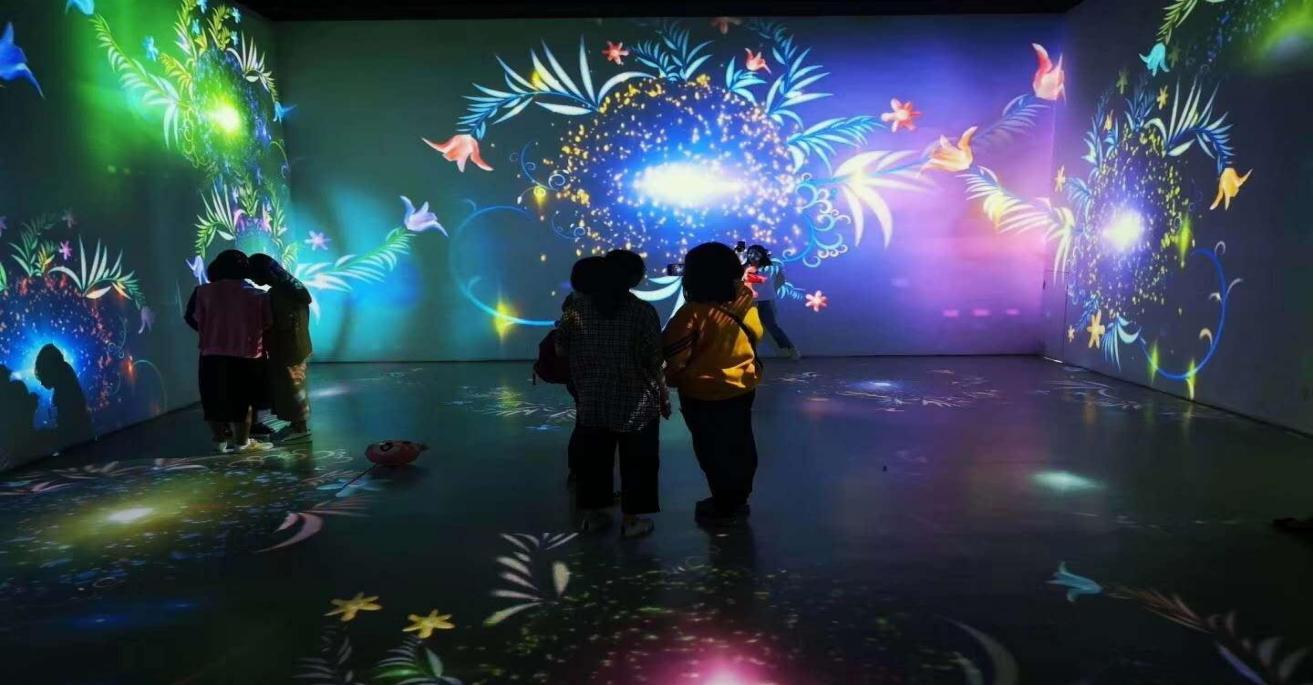 3、互动投影系统为融合当今世界最高科技的广告和娱乐互动系统。互动影音系统提供一种不同寻常并激动人心的广告与娱乐交相辉映的效果系统,适用于所有公共室内场所,特别是休闲、购物、娱乐及教育场所。